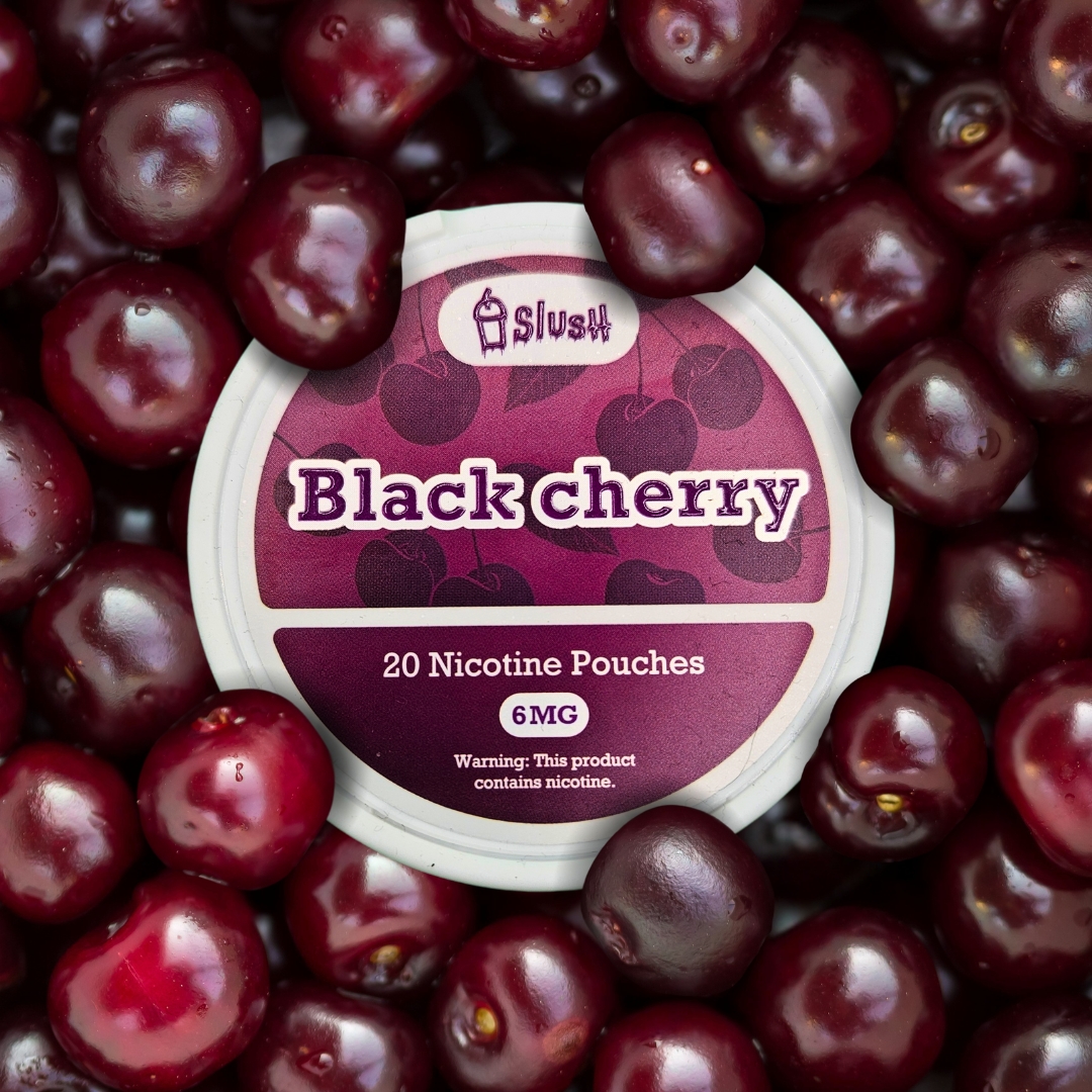 Slush Black Cherry 6 mg Meet ‘Black Cherry’ and savour the bold, tart sweetness of this timeless classic. Each puck holds 20 pouches bursting with rich cherry flavour–a true throwback! Tins of 20 pouches; logs of 5 tins
